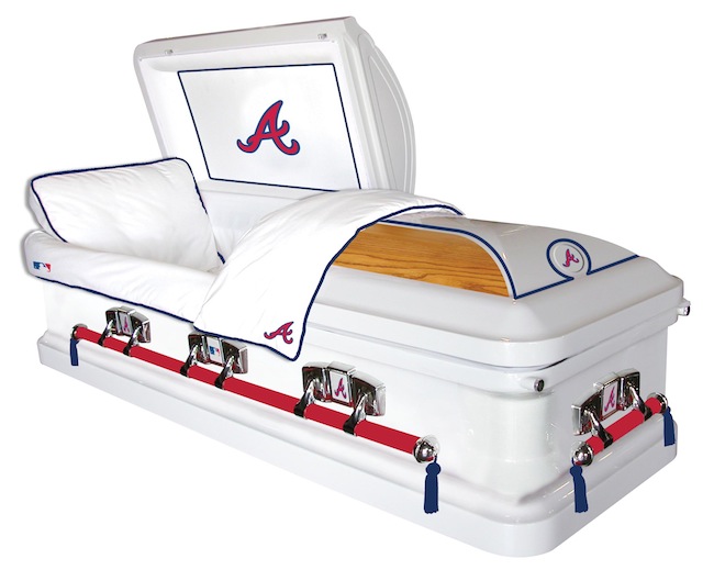 Eventually the time will come when it's "Game Over" for us all. And when that time comes for die-hard sports fan, there's only one way to go—inside your very own officially-licensed, customized sports branded caskets. We're not kidding. Here are 30 actual sports coffins—from college football to Major League Baseball—that you can take to the grave.
